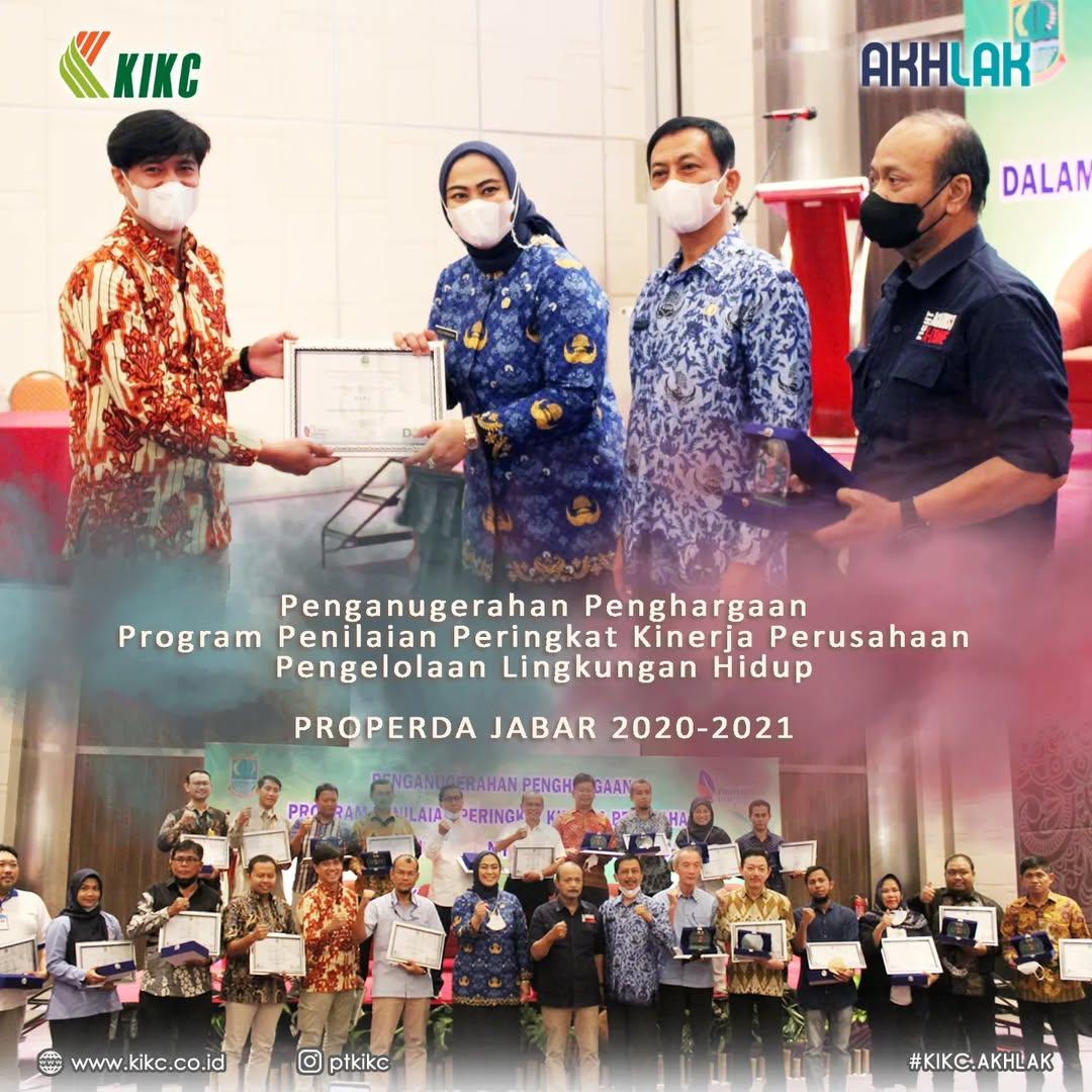 PT KIKC mendapatkan penganugerahan penghargaan "Program penilaian peringkat kinerja perusahaan pengelolaan lingkungan hidup" PROPERDA Jabar 2020-2021 yang diserahkan oleh Bupati Karawang, Ibu Cellica Nurrachadiana.